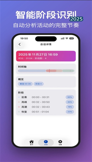 1. 关系健康量化指标与个性化反馈系统:本应用的突破性亮点在于,它不止步于数据记录,更致力于提供有意义的关系健康洞察。基于长期的互动数据,系统能生成个性化的关系活力指数与生理协调性评分。例如,它会分析双方从预热期进入高峰期的心率爬升斜率的匹配度,或比较恢复期心率回落的节奏。应用还会根据这些分析,提供温和的、非评判性的科学建议,如“近期数据显示恢复期较长,建议关注日间压力管理”,将数据转化为促进彼此关怀与理解的积极对话起点。