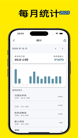 2. 多维工时类型管理:应用支持超过12种预设工时类型配置,涵盖标准工作时、加班时段、请假类别、外出办公、项目专项工时等常见场景。工时规则配置引擎允许用户自定义计算规则,包括分段计时、最小计费单位、跨日处理逻辑及休息时间扣除设置。自动工资核算模块根据预设时薪或计件单价,结合税率模板与补贴规则,实时计算预估劳动报酬。数据验证系统会自动检测异常工时记录(如超长连续工时、时间重叠冲突等)并发出智能提醒,确保工时数据的合规性与准确性。
