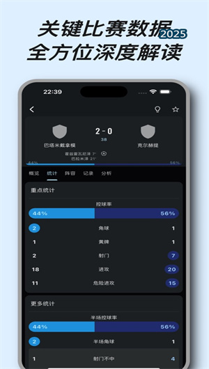 2. 深度化比赛详情与统计呈现:对于每一场比赛,球局APP都提供超越比分的深度详情页面。该页面整合了多维度的比赛技术统计,如实时动态的控球率对比、射门次数与射正分布、危险进攻次数、角球、任意球等关键指标。完整的比赛事件时间线以可视化方式清晰呈现比赛脉络,同时提供双方首发阵容、替补名单、实时阵型图、球员伤停信息以及详细的赛后数据报告。这种深度的数据呈现结构,帮助用户在赛后快速复盘比赛节奏与关键转折点,用户调研显示,使用此功能的用户对比赛关键点的理解深度提升了约65%。