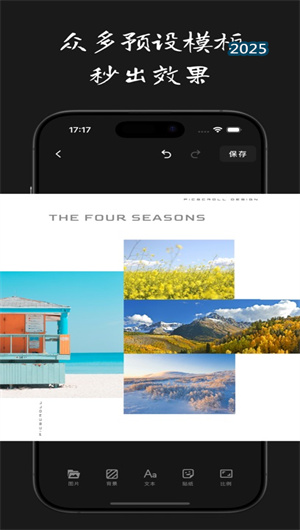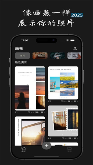 1. 智能化模板创作与多平台适配功能:画卷的核心是其强大的模板化创作系统。应用内置海量预设精美模板库,涵盖从简约现代到复古艺术等多种风格,用户可通过模板快速调用界面一键应用,大幅降低设计门槛。更关键的是其目标平台专用模板集,针对Instagram轮播图、小红书竖屏笔记、朋友圈九宫格等不同场景,预先配置了符合平台视觉规范的比例尺寸与排版网格。用户选择模板后,可进入自由编辑画布,通过拖拽式图片容器替换内容,系统会通过智能图像适配算法自动优化照片在容器中的显示效果,确保视觉焦点突出、构图和谐。