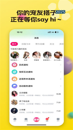 3. 基于LBS的线下社交与活动组织功能:宠之谷创新性地整合了基于位置的社交服务。通过 “附近宠友” 功能,用户可以在地图视图上发现周边养宠的同好,查看其宠物档案和动态,并发起线上聊天或线下邀约。核心的 “约伴遛狗” 与 “撸猫聚会” 模块,允许用户发布或参与附近的线下宠物社交活动。此外, “新奇宠物发现” 功能会推送周边宠物店、宠物友好咖啡馆或宠物展等信息,方便用户探索新奇宠物体验,拓展线下养宠生活圈。