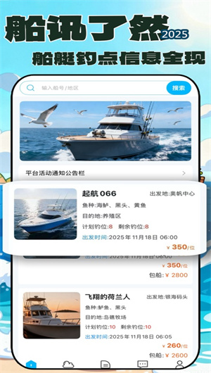 平台利用技术创新提升用户的决策体验。开发了沉浸式航线预览功能,用户在选择某条游艇巡游或海钓路线时,可通过嵌入了实时风浪、光影效果的3D虚拟海图,模拟体验沿途的“山海风光”。对于海上派对等场景,部分合作船艇支持 360度VR全景看船,用户可提前“登船”查看内部空间与设施。在行程结束后,平台提供一键生成多媒体航海日志的工具,自动整合行程轨迹、拍摄的照片、记录的鱼获数据,生成可分享的精彩故事,让每一次出海都留下体系化的数字记忆。