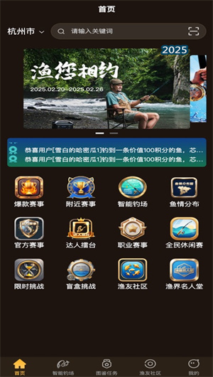 为增强竞技趣味性与社区凝聚力,渔界大陆开发了完善的 “同城线上积分赛事系统”。平台会定期或根据季节发起主题赛事(如“夏季雷强挑战赛”、“冬季大棚鲫鱼竞技赛”),用户报名后,在规定时间和认证钓场内的合规鱼获可通过拍照+GPS定位+称重(连接智能蓝牙秤)的方式自动上传并计入成绩,实时更新排行榜。赛事设有丰富的虚拟勋章、积分与实物奖励。这套系统将分散的个人垂钓活动组织化、游戏化,激发了用户的参与热情,平台月度赛事平均参与人数增长率达 60%,形成了线上线下联动的垂钓运动新范式。