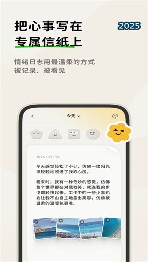 2. 绝对私密的多维情绪记录系统:豌豆心情提供了超越文字记录的多种情绪宣泄入口。用户可通过每日心情打卡快速标记情绪状态,也可在加密情绪日记中尽情书写心事,所有内容均通过本地优先存储与端到端加密技术保障隐私。此外,应用创新性地引入语音情绪倾诉功能,用户可通过录音诉说,系统会进行语音情感分析并给予视觉化的情绪波动反馈。所有记录最终汇入个人情绪时间轴,形成可视化的心灵成长轨迹图,让用户直观看到自己从“阴雨”到“天晴”的变化过程。