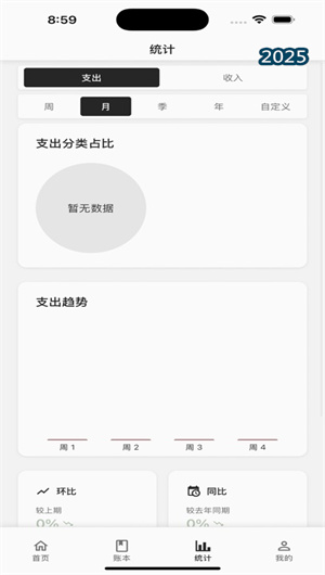 2. 多维度财务统计与可视化分析:小语记提供了强大的数据透视与报表中心。系统自动将流水数据整合为日、周、月、年等多周期的财务全景视图。用户可通过环形饼图直观查看消费结构占比,通过趋势折线图分析月度收支波动,通过对比柱状图评估预算执行情况。对于涉及外汇的用户,应用集成了多币种账簿功能,支持实时汇率换算与货币符号自由切换,所有外币消费将按选定本位币统一核算,让跨国消费或投资记账一目了然。