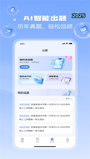 2. 智能试题生成与试卷编排功能通过AI组题引擎实现,该系统能够深度分析知识卡片语义网络,识别其中的核心概念、关联知识点与考核要点。基于教育学认知层级模型,引擎自动生成选择题、填空题、简答题与判断题四类题型的试题原型,每道题目均包含难度系数标注与知识点映射标签。教师可通过试题参数调节面板自定义题型比例、难度分布与题目数量,一键导出系统支持生成Word、PDF及在线测试等多种格式试卷,并自动生成标准化答案解析与考点分布统计表。