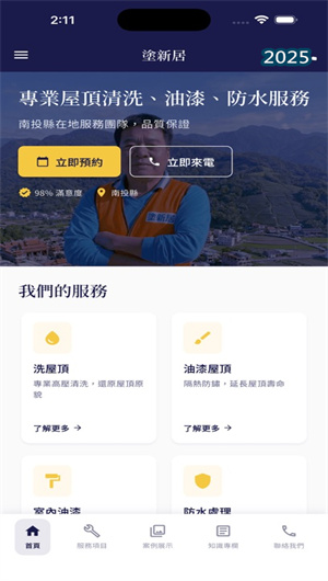 《塗新居》App是一款專為南投縣住戶及企業打造,整合專業塗裝與防水工程服務的一站式數位平台。本應用程式以工程管理為核心,結合線上預約、數位報價與施工監理等功能,徹底革新傳統的工程服務模式。我們匯聚了經過嚴格認證的油漆工程師與防水技術員,並建立了標準化的服務流程與品質檢驗體系。平台透過雲端管理系統,將您的施工案場與我們的後勤調度、物料管理及工班派遣無縫串聯,確保從諮詢到完工的每一個環節都透明、高效。我們深知房屋維護的重要性,因此致力於將專業的屋頂防護、牆體塗裝與漏水根治技術,轉化為簡單易懂的指尖服務,讓南投縣的每一位用戶都能輕鬆享有高達 98% 客戶滿意度的專業工程品質,實現「讓每個家都煥然一新」的承諾。