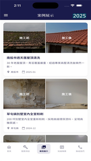3. 長效保固追蹤與預防性維護提醒:我們提供超越工程完工的長期價值。每一項完工案都會在App內生成獨立的電子保固書,明確記載保固範圍與年限。系統會自動建立該案場的維護曆,並根據施工材料特性(如塗料耐久性、防水層壽命)與南投當地氣候數據,在關鍵時間點向用戶發送預防性維護提醒。例如,在梅雨季前提醒檢查屋頂防水層狀態,或建議進行外牆塗膜的清洗養護。此項主動服務,旨在將一次性工程延伸為長久的房屋健康管理夥伴關係,數據顯示,使用此功能的客戶其房屋外觀與結構問題復發率降低了 35%。