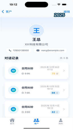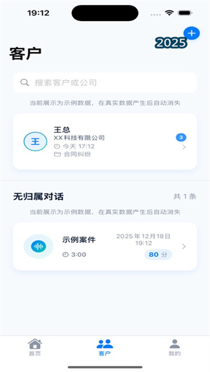 谈案宝内置了一个轻量但高效的客户关系管理(CRM)模块。律师可以为每位客户创建独立的电子客户档案,记录基本信息、案件类型、来源等。所有与该客户的咨询录音、生成的复盘报告都会自动归档至其名下,形成一条完整的沟通历史时间线。律师可以快速浏览某位客户历次沟通的综合评分变化曲线,查看其在各维度上的表现波动,从而洞察客户心理变化与自身服务改进的关联。即使是未及时关联的独立录音文件,也可以在后期通过搜索转录内容等方式,便捷地补充归属到对应客户档案中。