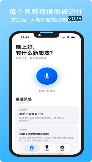闪念APP是一款面向现代多场景生活的前沿语音灵感记录工具,其核心使命是利用人工智能技术,确保用户的每一次灵机一动都不会因环境不便而遗憾消逝。本应用深刻洞察了人们在驾车途中、运动健身、散步思考等不便打字的时刻对快速记录想法的迫切需求,通过集成先进的AI语音识别引擎与自然语言理解模型,构建了一个从语音输入到结构化文本输出的高效闭环。用户在任何场景下,只需按下 “一键录音” 按钮,将闪现的念头说出来,AI便会在一分钟内自动完成语音转文字转录、智能内容提炼与结构化笔记生成的全流程。凭借其云端加密存储架构与多设备同步能力,闪念实现了用户灵感资产的安全汇聚与无缝访问。自发布以来,应用以其平均95%以上的语音识别准确率和仅需15秒内从录音到成稿的极速体验,赢得了用户的广泛信赖,成功帮助用户将突发灵感的捕获率提升了约70%,真正成为用户思想的“外部大脑”。