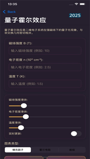 3. 量子霍尔效应参数化模拟与输运特性分析:应用将非交换几何工具直接应用于凝聚态物理的著名现象——量子霍尔效应。此模块允许用户输入或调节与实验相关的物理参数,如磁场强度、电子密度,系统将基于非交换几何模型(如采用非交换环面模型)计算关键的物理量。这包括分析朗道能级的简并度与分布,计算填充因子,并进而推导霍尔电阻的量化平台值以及纵向电阻的行为。用户可以通过滑动条调整参数,实时观察这些物理量的变化,特别是霍尔电导的量子化平台如何随着参数变化而出现或消失,从而在理论上探究整数与分数量子霍尔效应的非交换几何起源,为理论研究提供了动态的数字沙盘。