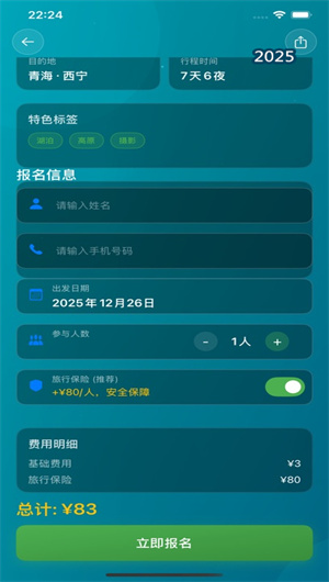 2. 个人行程管理中心与全景化报名记录:所有用户参与的行程,无论是已完成的、进行中的还是已报名的未来活动,都会被清晰、系统地收纳在“我的报名记录”模块中。此模块采用时间轴与卡片式相结合的布局,直观展示每项活动的关键信息(如活动标题、日期、目的地)、当前状态(待成行、进行中、已结束)及相关操作(如查看详情、联系组织者、撰写日记)。对于即将出发的活动,系统会提供贴心的行前提醒、天气提示及聚社成员破冰聊天的入口,帮助用户做好充分准备,实现从报名到出发的无缝管理。