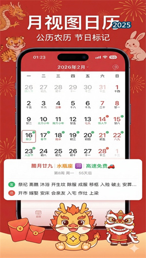 3. 零延迟的轻量化体验与离线核心功能:应用将“极速体验”贯彻到底。其安装包保持超小体积,几乎不占用手机存储。得益于精简的代码架构,应用实现秒级启动,真正做到“招之即来”,响应迅速,毫无等待感。所有核心的历法查询、假期信息、宜忌数据均内置在本地数据库中,无需任何网络连接即可完整使用,确保了在任何网络环境下都能提供稳定、即时的时间信息服务,是真正意义上的离线全能时间工具。