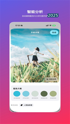 1. 结构化灵感库与视觉智能管理引擎:摄手座的核心功能之一是构建了一个强大的灵感管理系统,即“灵感库”。用户可以将散落在手机相册、社交平台或网页上的参考图、色调参考、构图示意等视觉素材,通过一键收藏或批量导入功能,系统地存入应用。系统支持多维度的智能标签体系,用户可以按照风格(如极简、复古)、题材(如人像、风光)、色彩情绪或技术要点(如光影、构图)为每张图片添加自定义标签。更强大的是,应用内嵌了基于内容的图像识别算法,能够自动为导入的图片建议相关标签,并支持用户通过自然语言搜索(如“寻找逆光人像参考”),在庞大的个人视觉宝藏中实现毫秒级的精准检索,使灵感调取效率提升约65%。