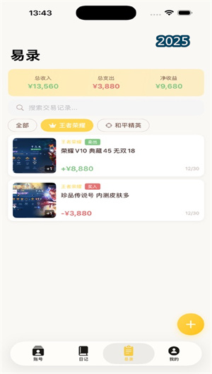 针对涉及账号、皮肤、游戏币等虚拟物品交易的玩家,《账游宝》配备了专业的虚拟交易账本。用户可以记录每一笔收支的详细信息,包括交易类型(购买/出售)、交易平台、物品名称、成交价格、交易对手方及日期。系统自动对流水进行双向分类统计,区分收入与支出,并可根据时间范围、游戏项目或交易类型生成清晰的收支汇总报表。此功能帮助玩家清晰掌握在游戏经济中的投入与回报,有效管理游戏消费预算,识别非理性消费模式,成为个人虚拟经济健康的“审计工具”。