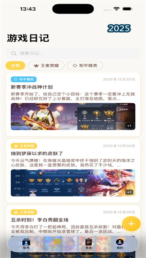 超越冰冷的数字统计,《账游宝》提供了情感化的记录维度——游戏时光日记。用户可以按日期创建日记条目,记录单场对局的高光战绩(如五杀、胜利)、难忘的团队合作或有趣的游戏见闻。日记支持富文本编辑,并可关联至具体的游戏账号。核心的 “精彩时刻”多媒体系统允许用户直接上传游戏截图或录屏片段,作为日记的视觉证据与回忆锚点。所有日记条目按时间轴自动排序,形成专属的游戏生涯叙事流,方便随时回顾个人游戏技术成长与情感体验的演变轨迹。