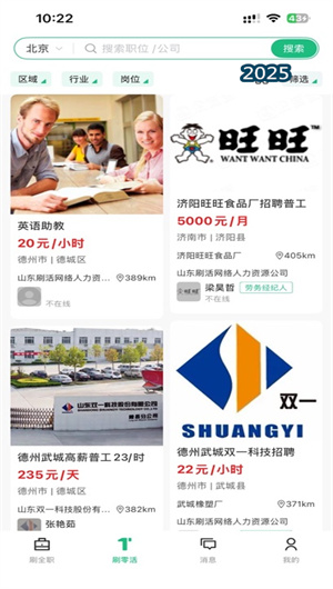 1. 双轨制岗位资源库与智能信息流呈现构成了平台的内容基石。刷活创新性地设立了 “全职就业专区” 与 “零工找活专区” 两大核心板块,全面覆盖长期稳定用工与短期灵活用工场景。在 “全职专区” ,企业可发布结构化的长期岗位招聘需求;在 “零工专区” ,则侧重于日结、周结等短期用工信息的即时发布。平台采用独特的 “瀑布流式信息刷新” 方式,求职者通过简单的下滑操作,即可持续获取系统根据其偏好与位置实时推送的最新招聘岗位,这种 “刷活式浏览” 体验极大降低了信息获取门槛,让找活像“刷新闻”一样简单直观。