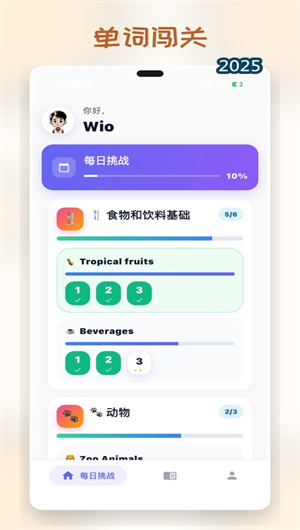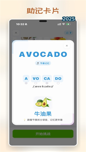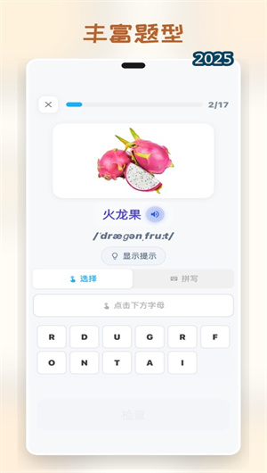 2. 多模态融合的记忆编码与提取训练符合大脑最高效的工作方式。应用创造性地将文本释义、AI助记词(听觉/逻辑编码)、看图猜词(视觉编码)以及例句语境(情景编码)融为一体,为每个单词构建了立体的记忆锚点。在学习与复习环节,系统会随机采用不同的方式(如要求根据中文选词、根据图片选词、根据例句填空)进行测试,这种多通道提取练习能显著加深记忆痕迹,防止遗忘。其生活单词 的选材倾向,也确保了所学内容能快速应用于实际阅读与交流场景,增强学习正反馈。