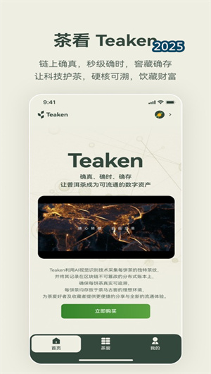 《茶看》(Teaken)是全球首个基于区块链存证技术与AI茶纹识别算法构建的普洱茶资产数字化管理平台。该平台依托全球首座万吨级智能茶窖——云南茶马古窖的物联网监测系统与机器人仓储管理基础设施,实现了高品质普洱茶的数字化映射与资产化流通。通过茶纹特征提取与唯一标识符生成技术,平台为每饼普洱茶创建不可复制的数字指纹凭证,并借助分布式账本技术确保产品从毛料采摘、生产加工到仓储转化的全生命周期可追溯。平台核心架构包含智能合约部署层、视觉识别引擎与数字资产交易模块,旨在解决传统茶产业中普遍存在的真伪鉴别困难、存储标准缺失与价值流转壁垒三大痛点。Teaken不仅是普洱茶收藏的数字化管理工具,更是开创了茶叶行业的信任经济模式,使普洱茶从消费品升级为标准化的数字资产,实现了实物窖藏与链上确权的完美结合。