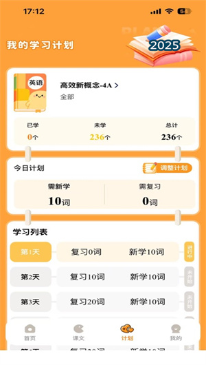 应用的核心是个性化学习计划生成器。用户完成初始词汇量诊断测试后,系统将综合其目标词库(如“人教版高中英语必修三”)、每日学习负荷设置及期望完成周期,生成一份可视化的学习日历。每日任务由新词学习模块与智能复习队列两部分组成。新词学习模块依据记忆难度预估模型,从目标词库中提取适量新词;智能复习队列则严格按照艾宾浩斯记忆曲线计算出的遗忘概率曲线,从用户个人词本中筛选出临近遗忘阈值的旧词进行强化。系统实时更新每个单词的记忆熟稔度分值,并据此动态调整其在复习周期中的出现频率与间隔,确保记忆巩固效率最大化,用户长期记忆留存率较传统方法提升58%。