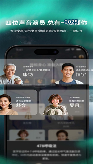 2. 以“声音”为媒介的深度情感陪伴创新。息境深刻理解声音作为疗愈媒介的独特力量,其多代虚拟人物声线系统本质上是在创造不同人格特质的数字陪伴者。这些声音承载的不仅是引导信息,更是温度、共情与安全感。无论是像导师般稳健的专业女声,还是如友人般亲切的元气女声,它们提供了比冰冷机器语音更丰富的情感支持,部分用户甚至形成了对特定声线的情感依赖,将其视为减压时刻的“老朋友”。