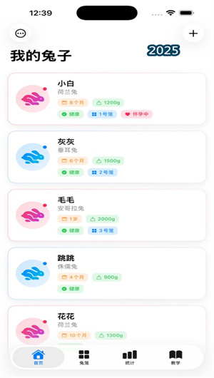 2. 兼顾“情感宠物”与“生产资产”的双重管理视角。兔力度敏锐地意识到用户群体包括将兔子视为家庭宠物的“宠主”,也包括从事兔子养殖的“生产者”。因此,在产品设计中巧妙平衡:为宠主提供丰富的成长记录、行为日志和社区互动功能,满足情感需求;为生产者提供多兔笼管理、繁殖记录、成本核算(如饲料消耗统计)等实用工具,满足效率需求。这种 “一体两面” 的设计,使其用户覆盖面更广,适用性更强。