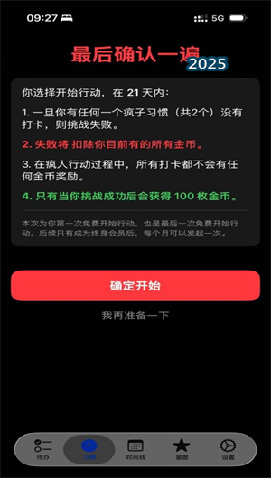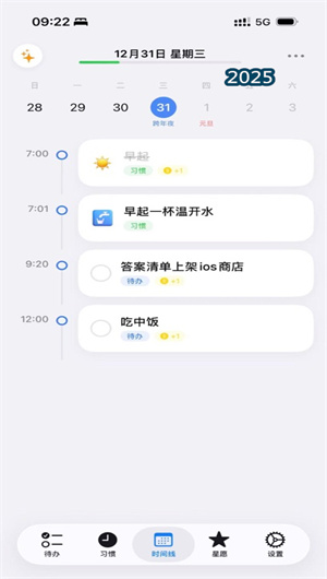 2. 智能动态日视图与“疯人行动模式” 解决决策瘫痪。每日清晨,应用的智能排程算法会根据任务的截止日期、优先级、预设的习惯频率以及用户前一天的任务完成情况,自动生成一份高度个性化的 “今日答案清单”。这份清单并非简单罗列,而是经过优化的执行序列。更独特的是,用户可一键开启 “只做完美的事儿模式”(疯人行动)。在此模式下,系统会极度简化界面,仅呈现当前唯一需要专注的任务,并屏蔽所有其他干扰信息,强制用户进入心流状态,直至该任务标记完成才解锁下一个。这种设计直击 “不知该干什么” 的痛点,将决策负担降至零。