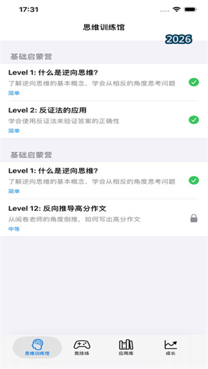 为赋予学习过程更明确的目标感和认可度,应用建立了完整的逆向思维能力评级体系。系统根据用户的训练时长、闯关进度、竞技表现等多维度数据,进行综合评估,授予从F级到S级的能力评级。用户可在“个人成长中心”查看详细的每周/每月成长报告,了解自己的优势与薄弱点。配套的成就系统设有丰富的个性化勋章,完成特定挑战即可解锁,并可分享至社交平台。这套体系不仅满足了用户的荣誉感,其权威的能力认证也能为用户的职场竞争力提供有力背书。