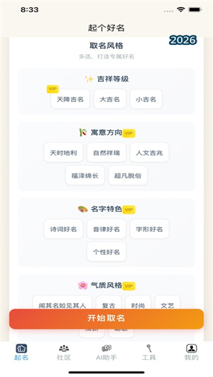 初临起名是一款深度融合中华传统文化智慧与现代智能算法的新生儿命名专业辅助工具,旨在为父母提供科学、便捷且富有文化内涵的姓名生成解决方案。本应用以精准的生辰八字分析与五行平衡理论为基础,结合海量诗词典籍、音韵学原理与字形美学标准,构建了一套多维度的智能起名系统。用户仅需输入新生儿的姓氏与生辰日期,系统即可启动复杂的命理计算与文化匹配引擎,生成海量符合个性化要求的候选名字。通过灵活设定性别偏好、字数结构、五行属性、吉祥等级及多元的寓意方向,初临起名将传统命名中复杂的玄学逻辑与人文考量,转化为清晰可控的数字化流程,帮助每一个新生命获得一个音形义俱佳、且承载美好祝愿的专属名字。