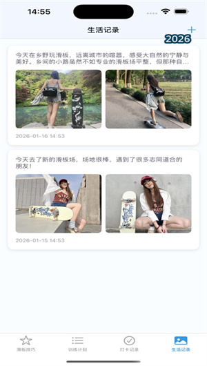 为增强训练的持续性与社群归属感,微面设计了丰富的社交化激励功能。核心是 “滑板打卡” 系统,用户完成一次训练或达成某个里程碑(如首次成功Ollie过一立)后,可发布包含文字描述、图片或短视频的打卡动态。打卡可关联具体的训练计划或滑板技巧。社区设有 “每日挑战” 、 “同城约板” 及 “招式解锁榜” 等板块。用户可以在动态下互相鼓励、交流心得,形成积极的同好互动氛围。同时,应用鼓励用户记录与滑板相关的生活片段,如发现的新滑板地形(Spot)、板面设计、参与滑板赛事的见闻等,打造完整的滑板生活记录流。
