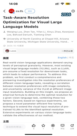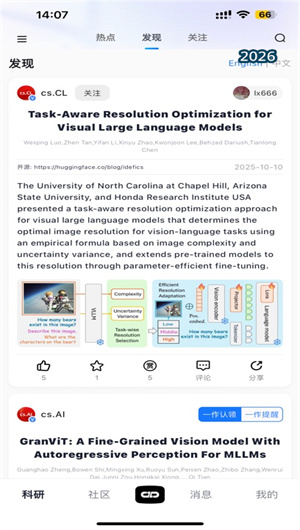 减论的核心功能是其强大的个性化内容发现引擎。用户注册后,可通过选择研究领域、兴趣关键词、关注机构及学者等方式,快速构建个人学术画像。基于此画像与用户的持续互动行为,系统的推荐算法会从海量文献库中,实时筛选并推送高度相关的最新预印本、顶会论文及高被引研究,实现“信息找人”。推送不仅限于标题与摘要,更可智能提取核心图表、研究方法及关键结论的亮点,帮助用户在碎片化时间内快速评估论文价值,极大提升文献调研与前沿跟踪的效率。