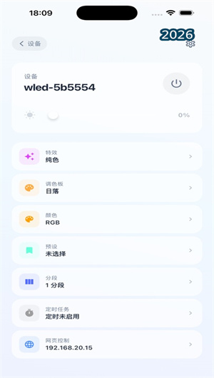 应用提供超越常规的色彩控制面板,包含HSL色彩空间环、RGB数值精确输入以及CIE色温调节滑块,满足从快速选择到专业调校的全方位需求。其内置的WLED原生特效库完整集成了上百种预置灯光模式,如“彩虹波浪”、“火焰模拟”、“音频可视化”等,每种特效都配有独立的实时参数调节器,用户可以微调速度、强度、混合度等属性。用户还可通过自定义特效序列编辑器,将多个基础特效按时间轴组合,创建独一无二的动态灯光秀程序。