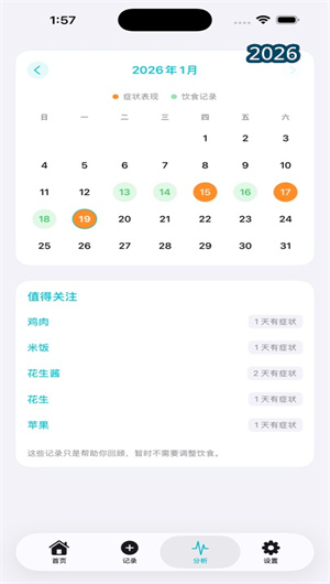 应用的核心数据呈现界面是强大的全景日历仪表盘。用户不仅可以在传统日历格子上看到每日是否有饮食或症状记录的概要标识点,更可以点击任一日期,直接展开该日的详细活动流。系统独有的时间线整合引擎会将同一日内发生的所有“饮食记录”与“症状记录”按实际发生时间顺序排列,清晰展示两者的先后关系与时间间隔。用户可通过拖动时间范围选择器,快速查看任意时间段内的聚合情况,直观发现特定食物摄入后,症状出现的频率与规律。