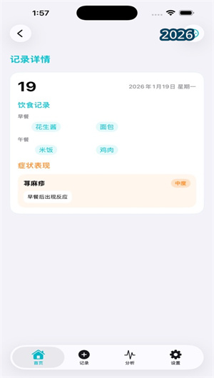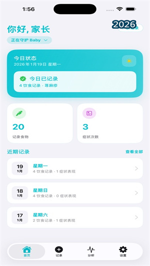 当被观察者出现不适时,用户可进入对应的档案,记录详细的症状描述清单。系统提供常见的过敏反应症状库以供勾选,如皮疹、腹泻、呼吸道症状等,并为每种症状配备四级严重程度滑块(轻度、中度、重度、危急)进行量化评估。每次症状记录同样支持添加文字说明与照片证据,并自动与同时间段的饮食记录进行潜在关联。用户可以为特定的事件(如“疑似牛奶蛋白反应”、“湿疹爆发期”)添加自定义事件标记,这些标记将在时间线视图中突出显示,帮助快速定位关键健康事件节点。