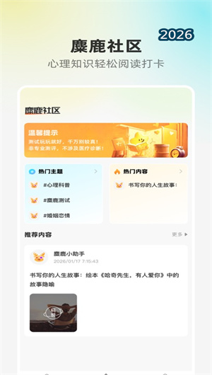 麋鹿测试App的核心特色在于精准把握“趣味”与“科学”的平衡。所有上线的测试均经过内部心理学顾问团的内容审核,确保其具有可靠的理论依据或经过信效度检验,杜绝纯娱乐性的“星座式”测试。同时,在呈现方式上坚决去学术化,使用通俗易懂的语言和生动比喻解释概念。测试结果明确标注其探索性意义与局限性说明,避免用户对单一测试结果产生绝对化认知。这一“轻科学”路线使得专业心理学的入门门槛大幅降低,吸引了大量原本对心理学望而却步的普通用户。