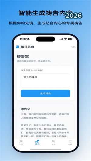 针对许多信徒“不知道如何开口祷告”的困惑,「每日恩典」开发了独特的「祷告助力」功能。该功能基于情感识别与圣经原则,为用户提供个性化的祷告词启发。用户只需选择或输入当前的心情状态(如感恩、忧虑、寻求指引等),系统便会调用「祷告词模板库」与相关经文,生成贴合处境的祷告范例。此外,应用提供「祷告事项清单」管理工具,支持为不同类别的代祷事项(如个人、家庭、教会、世界)设置提醒。所有祷告记录均会加密保存于「个人祷告日志」中,形成珍贵的「属灵对话」档案,供用户随时回顾神的作为。