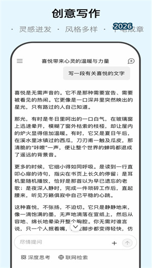 应用内嵌的创意激发系统是内容创作者的得力工具。它通过头脑风暴提示词库、思维导图自动生成与多元视角分析模型,帮助用户快速突破思维瓶颈,激发新颖灵感。在内容生成方面,系统支持从一句话大纲到完整文章的结构化内容生成,涵盖博客文章、营销文案、剧本框架、诗歌创作等多种体裁。用户可设定风格基调、目标受众与内容长度等参数,AI将结合大规模预训练知识与用户偏好学习,输出高质量、原创性的文本内容。