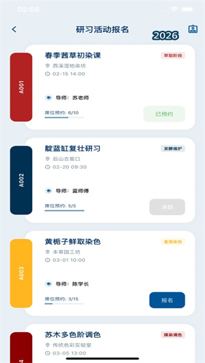 App独创性地将线下实践与线上管理深度融合。其 “研习报名与课程管理” 模块,允许用户在线浏览和预约各地草木染大师或工作室开设的线下课程,实现非遗技艺传承的便捷对接。课程结束后,学员可将课堂上的实践内容,立即通过 “染料实验日志系统” 转化为个人的数字学习笔记,并可将自己的作品(最终色样)与老师的示范样本在同一个界面进行对比学习。老师也可以创建课程专属的知识合集,分享给学员。这种线上线下一体化(OMO)的模式,打通了从学习、实践到记录、复习的完整闭环,极大提升了研习的效率与深度。