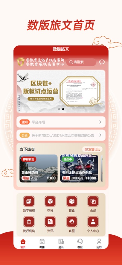 2、合规有序的数字资产流通交易枢纽:作为安徽省文交所直属板块,数版旅文严格遵循《文化数字资产交易实施指南》国家标准,构建涵盖资产发行、合规审核、交易撮合、结算交割的全流程流通体系。平台设立“文创版权交易”、“文博数字典藏”、“文旅权益凭证”三大特色交易专区,支持限量发售、授权转让、权益行权等6种交易模式。每件上架资产均通过5重合规审核——包括权利溯源审查、授权链完整性验证、发行方案备案、风险评级及交易对手方适格性核验,确保每一笔交易均在法律法规框架内有序运行。系统采用智能合约自动执行版税分成,创作者可在作品每次转售中获得3%-10%的持续收益,已累计自动分配版税超过260万元,真正实现“一次创作、长效获益”。