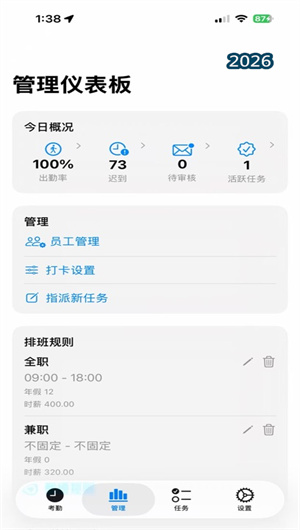 对于小团队、门店、自由职业者而言,考勤管理往往陷入两难:用复杂的专业软件显得小题大做,用简单的签到又无法满足统计和排班需求。闪电考勤APP正是为解决这一痛点而生,它是一款面向个人与小团队的考勤管理工具,覆盖从打卡到统计的完整流程,帮助你更清晰地记录出勤、工时与团队执行情况。无需复杂培训,打开即用——上班/下班一键打卡,系统自动记录打卡时间;今日状态与工时汇总清晰展示,支持按今天、本周、本月、今年乃至累计多维度查看。对于团队管理者,可以轻松进行员工管理、排班规则设定、任务指派与跟踪;对于个人,忘记打卡时还可提交补卡申请,确保记录完整。更贴心的是,支持按工时汇总进行薪资预估,便于核算与对账。闪电考勤,让考勤这件事真正变得“快如闪电”。