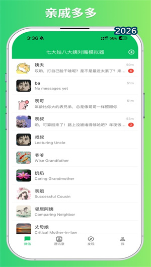 七大姑八大姨的核心,是一个庞大的虚拟亲戚人物库。应用内置了32位性格各异的AI亲戚,涵盖了中国家庭中最常见的角色:慈祥的爷爷奶奶、唠叨的妈妈、严肃的爸爸、热心的七大姑八大姨、爱攀比的表姐、沉默的表哥、爱炫耀的堂弟……每一位AI亲戚都有独立的人物设定和对话风格,例如大姑总是关心你的婚姻状况,二舅喜欢比较孩子的收入,表妹则热衷于展示自己的成就。当你开始对话时,AI会根据你预先填写的个人信息——年龄、职业、收入、婚恋状态——实时生成贴近现实的对话内容。这种角色扮演式的模拟,让每一次练习都如同真实的家庭聚会预演。据统计,用户平均与超过15位虚拟亲戚完成对话练习,覆盖了最可能遇到的各类提问场景。