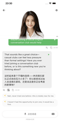 3、中英对照与地道表达深度解析系统:每次对话结束后,系统自动生成完整的双语对照文本,用户可随时查看任意句子的中文翻译与英文原文。针对对话中出现的习惯用语、俚语、固定搭配等,系统特别标注并展开解析——例如,当用户使用“How do you do?”时,系统会提示这是初次见面的正式问候,并推荐更符合年轻人交流习惯的“Nice to meet you”或“How's it going?”。用户可将自己不熟悉的表达加入“个人生词本”,系统根据遗忘曲线在后续对话中自动复现这些知识点。目前“地道表达库”已收录超过1.2万条实用短语,被用户称为“口语的宝藏词典”。