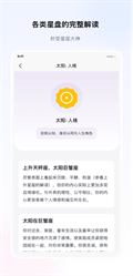 3、占星师亲撰的九大星盘深度解读:平台内置由5位资深职业占星师组成的团队历时12年打磨的星盘解读内容库,覆盖本命盘、行运盘、比较盘、组合盘、时空盘、马克思盘、太阳返照盘、月亮返照盘、宿点盘等9种专业星盘类型。每份解读均结合星体落入星座、宫位及相位关系,从性格特质、天赋潜能、情感模式、事业方向、人际关系、流年运势等10余个维度展开分析,平均每份解读文本长度达2,000字以上。解读内容既包含专业术语的清晰解释,又融入具体的生活建议,例如“金星落7宫且与木星呈三分相,你在亲密关系中天生懂得付出与包容,但需警惕过度妥协”。该解读库已帮助超过200万名用户更深入地认识自己。