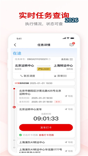 大驾好APP为司机提供任务通知查看、运输执行、到发车打卡的全流程支持。调度端下发任务后,司机端实时收到推送,点击查看任务详情(货物信息/路线规划/停靠站点)。到达站点规定范围内,司机可一键到车打卡,离开时发车打卡,系统自动记录停留时长和准点率。所有打卡记录可在签到记录中追溯。该功能使运输任务准时率提升至97%,异常延迟下降63%。