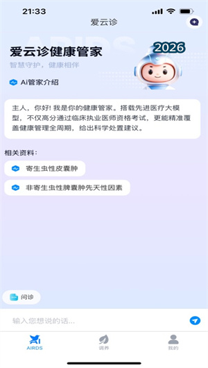 爱云诊秉承“早知早防、早知早调、早知早治”理念,帮助用户从“被动就医”转向“主动预防”。通过AI技术降低健康管理门槛,让优质健康服务触手可及,有效控制健康风险、降低医疗支出。