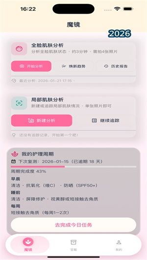 问肤兔采用GAGS(全球痤疮分级系统)和IGA(研究者整体评估)等国际皮肤科通用标准,通过AI对面部肌肤进行多维度分析,生成完整的肌肤状况报告,涵盖肤质评估(干性/油性/混合性)、问题区域识别(T区油脂/两颊敏感/痘肌分布)及针对性改善建议。每次分析结果完整记录,支持时间轴对比不同时期的肌肤数据。该功能使91%的用户表示“第一次这么清楚地了解自己的皮肤”。