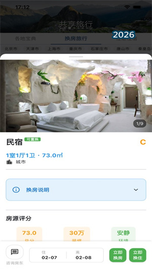 本平台构建了一个基于信任与共享的社区生态,让闲置房源得以充分利用,让旅行住宿更加多元有趣。作为房东,你可以上传房源信息、设置可换住或可租日期,并通过旅行币或租金方式获得回报;作为房客,你可以浏览全球各地的特色房源,通过换住、任意住宿或租赁等方式,找到最适合自己的居住空间。任宿出行打破了传统住宿模式的边界,让每一次出行都有归属感。