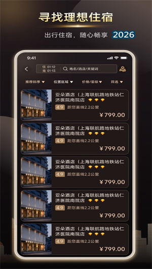 本应用以用户体验为核心,通过深度整合国内外多类型酒店资源,构建起覆盖商务出行、休闲旅行、家庭出游等全场景的住宿选择体系。无论是繁华都市的中心酒店,还是风景区的特色民宿,黑璨都能通过智能筛选和精准推荐,帮助用户快速找到最适合的住宿方案。价格透明、预订高效的平台特性,让用户告别比价烦恼,专注于享受旅途本身。
