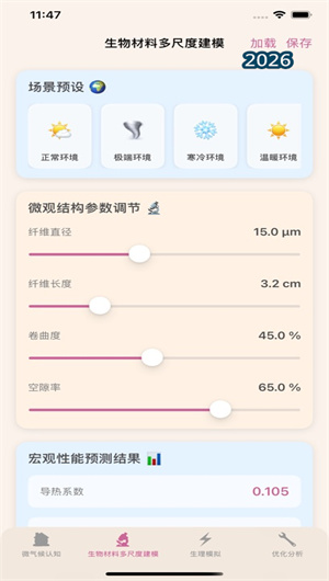 3. 教育科研双模式与数据深度分析:为满足不同用户群体的需求,帮帮忙设计了教育模式与科研模式两种使用界面。教育模式面向学生和普通爱好者,界面简洁直观,参数预设合理,操作引导清晰,配有丰富的知识卡片和动画演示,帮助用户快速理解核心概念。科研模式则面向专业研究人员,开放所有参数的底层设置,提供实验方案设计、批量仿真运行、数据导出分析等高级功能。在科研模式下,用户可以自定义材料本构模型、编写环境变化脚本、设置多因素正交实验,并将仿真结果以专业图表形式导出,用于论文发表或项目报告。这种双模式设计,让帮帮忙既能作为课堂教学的生动工具,也能成为科研工作的有力助手,真正实现了从科普到科研的全覆盖。目前已有超过35% 的高校在仿生学课程中采用帮帮忙作为教学辅助工具,25% 的材料学研究团队利用平台数据启发新型保温材料设计,而15% 的建筑设计公司在可持续建筑项目中参考了平台揭示的生物气候调控原理,将自然智慧真正转化为人类创新。
