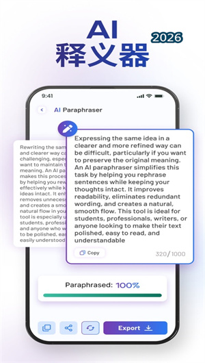 AI摘要内置ai写作助手、ai写作大师、写作文神器等写作工具,支持作文生成器、文章生成器、写论文等场景。用户可快速生成学习写作、论文草稿、文案内容,显著提升写作效率。系统提供多种写作模板和风格选项,适配不同需求。该特色让97%的用户表示“写作文再也不用憋半天了”。
